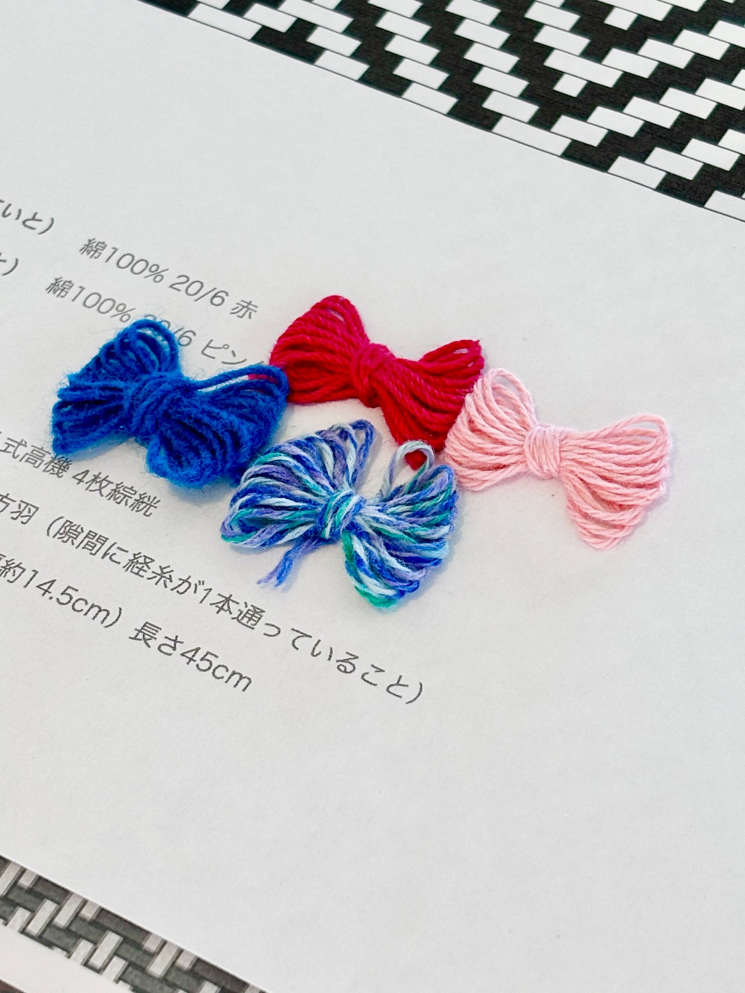 講師の伊藤(SHIRO.スタッフ)がご用意した組織で経糸を張った状態からお好きな色の緯糸を選んで織り上げました。