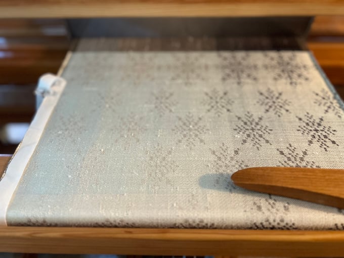 ダマスク織りで毛織物と絹織物を制作し、展示を行う。
