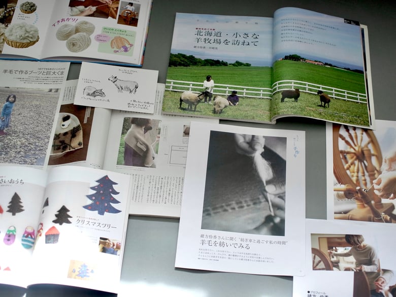 ▲羊毛の手しごとを紹介した過去の掲載雑誌の一部