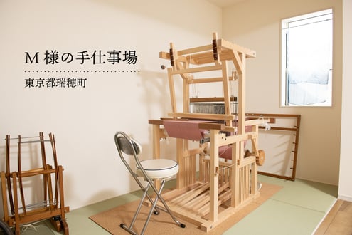部屋の中央に見える機織り用の椅子は京都・高橋治への特注品。1台は譲り受け、同じサイズでもう1台注文しました。「使用感が良く、気に入っています。」とのこと。