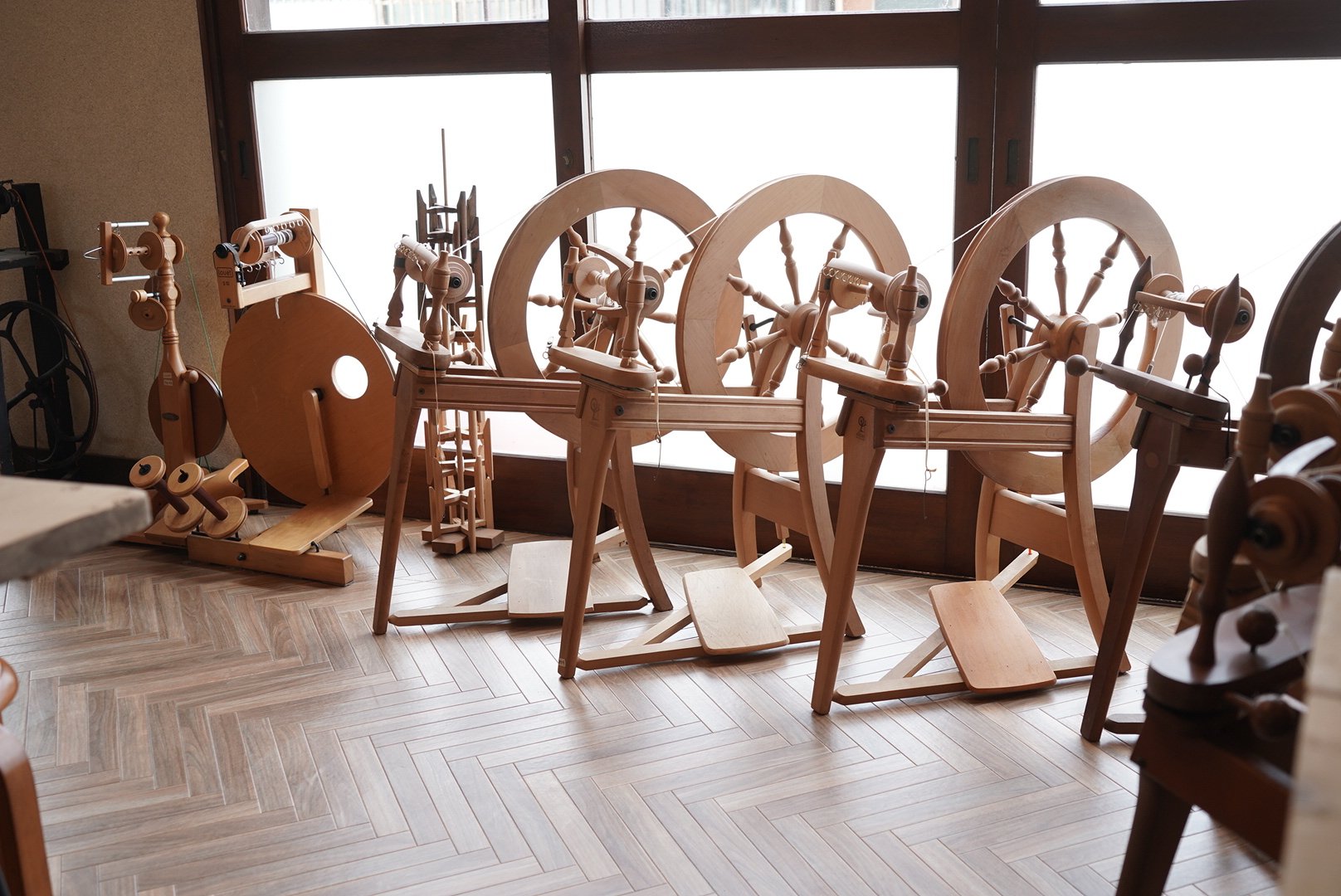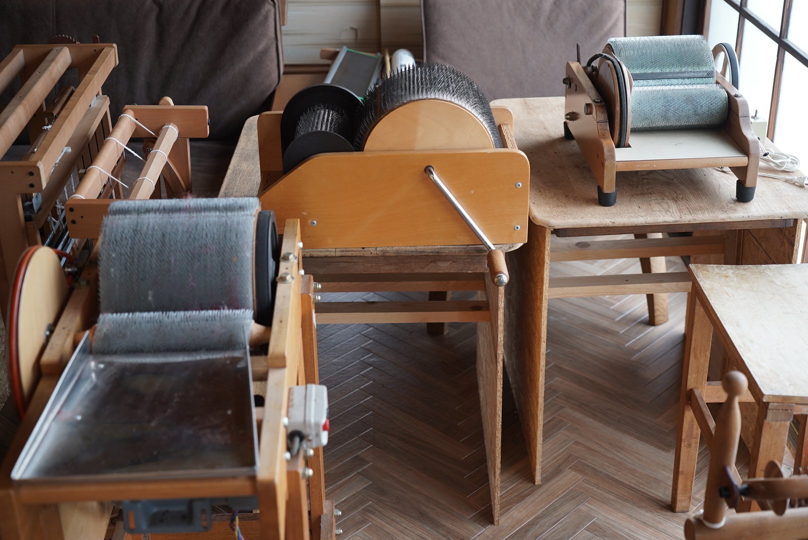 教室運営に必要な基本的な紡ぎ道具を工房内に備えています。